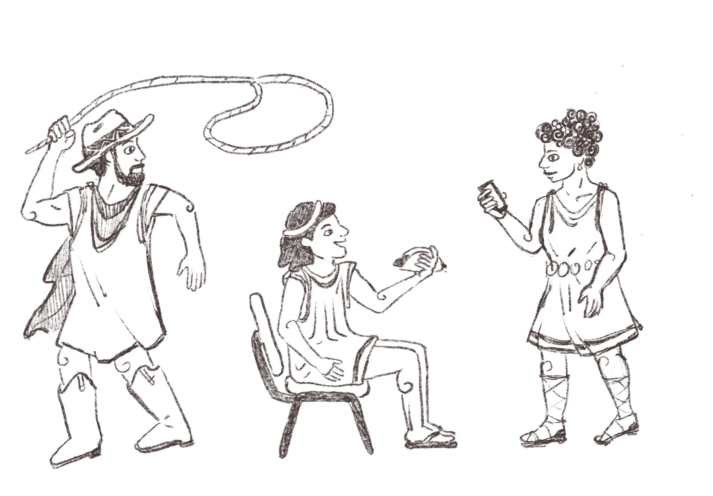 Two concept sketches I pitched to the owners, both inspired by ceramics: the coil building one they selected, and “Greek pottery (but make it Texan)”.